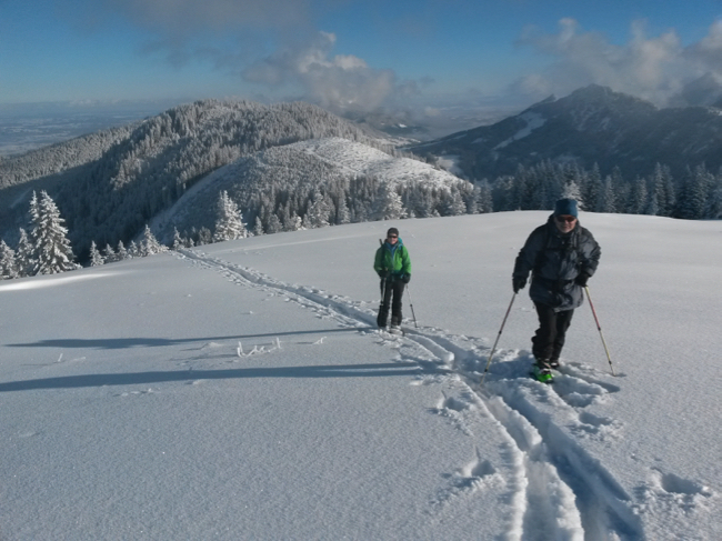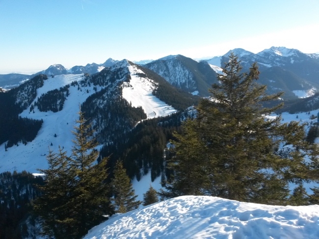 Wir hängen diesmal nach der Abfahrt zur oberen Firstalm noch die Brecherspitze an, deren Gipfelhang