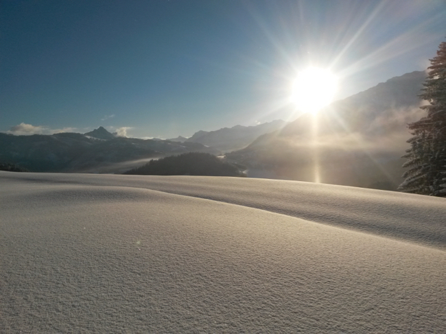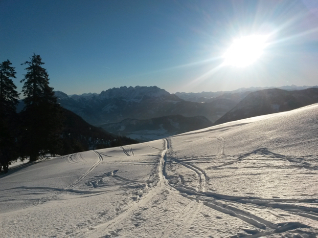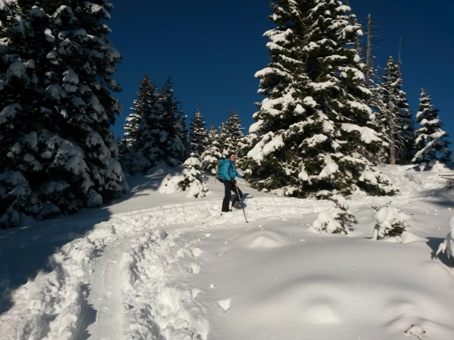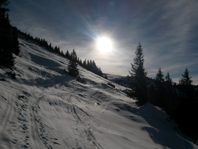 durch den schönen Schnee wieder zurück zum Auto.