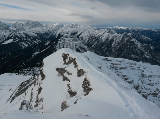 Am Gipfelgrat angekommen verzieht sich die Sonne dann endgültig hinter den Wolken.