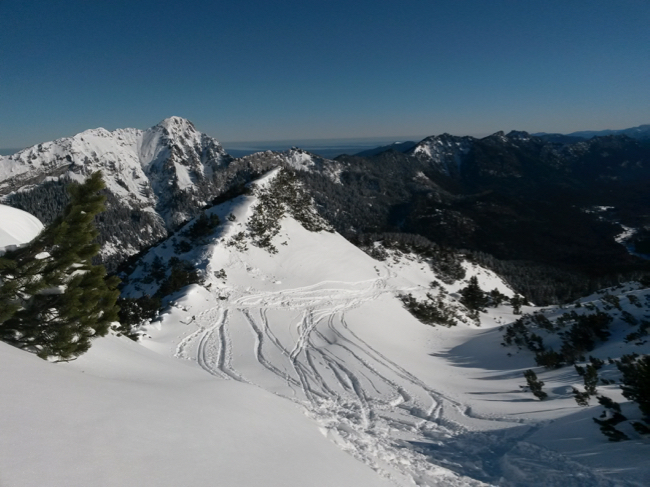 Offensichtlich haben schon einige Tourengeher vor uns die tollen Bedingungen ausgekostet.
