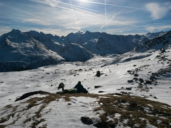 Bei etwa 2700 Hm lassen wir es gut sein und genießen bei einer Pause die Aussicht