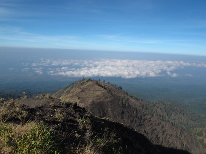 Nach der Besteigung des Tambora schippern wir weiter nach Lombok. Im wesentlichen ist diese Insel ein großer Vulkan - der etwa 3700 m hohe Rinjani. Genau dieser ist unser nächstes Ziel - im Bild erkennt man im Hintergrund den Hauptgipfel.