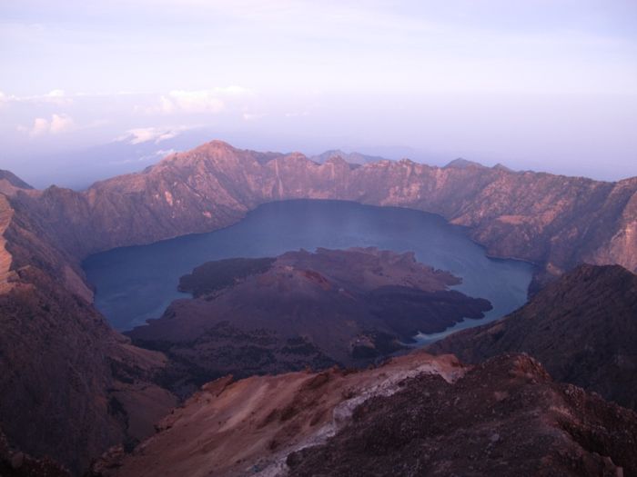 Ein letzter Blick auf den kleinen Gunung Baru. Er wird in den nächsten Jahren weiterwachsen und in ferner Zukunft den Rinjani-Krater ausfüllen und weiter aufbauen.