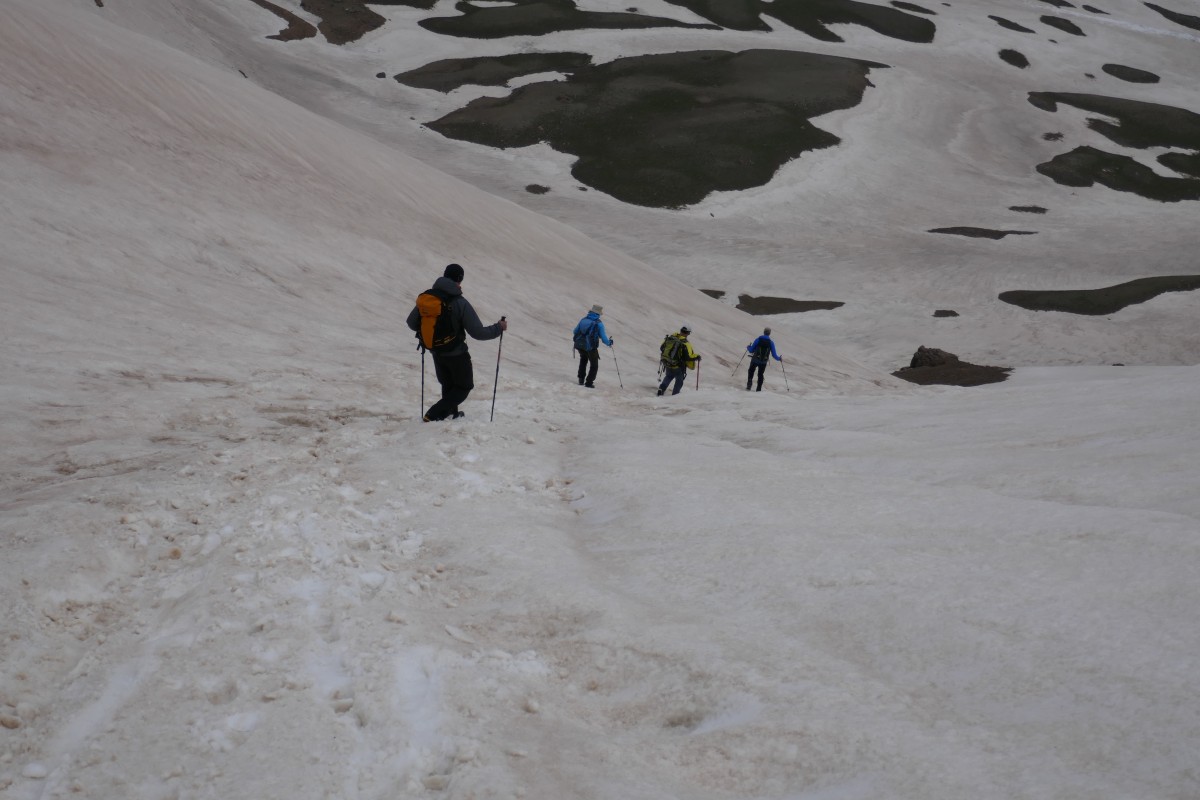 enttäuscht. Am großen Hesarchal-Plateau erwartet uns erneut die Gipfelschau ringsum, und wir gehen beinahe schon beschwingt weiter.