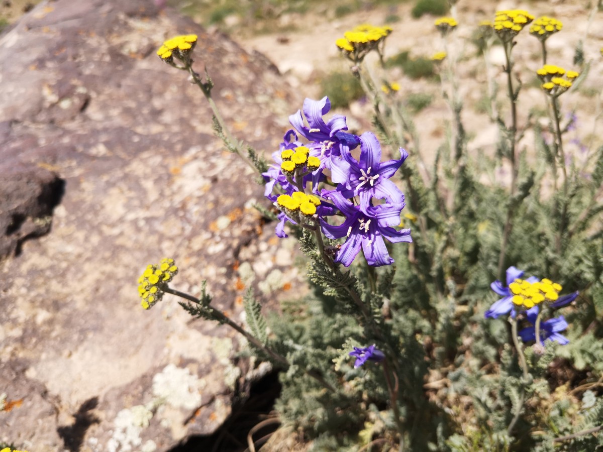 verladen und nach oben transportiert, während wir mit dem Tagesrucksack losziehen. Es geht durch ein liebliches, mit vielerlei Blumen bewachsenes Tal sanft bergan.