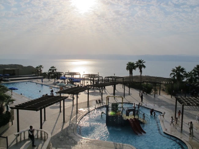 Blick über den Hotelpool hinweg zum Toten Meer