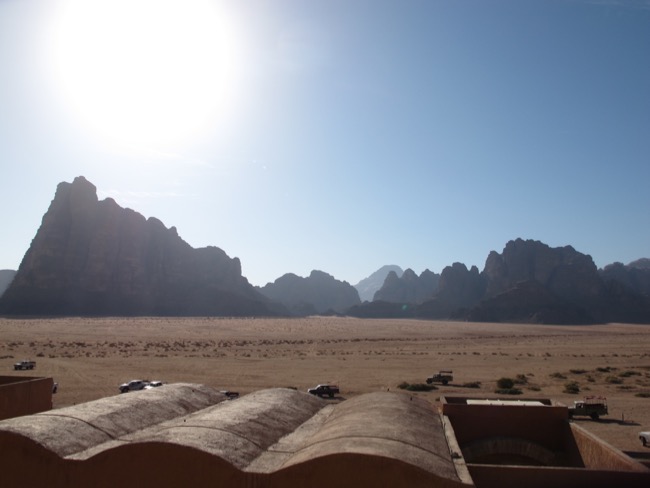 Vom Wadi Rum Visitor Centre sind die "Sieben Säulen der Weisheit" zu sehen -
