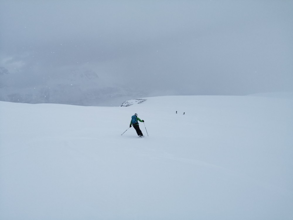 Danach begeben wir uns in eine verhaltene Abfahrt bei zunächst vielleicht 50 Metern Sicht