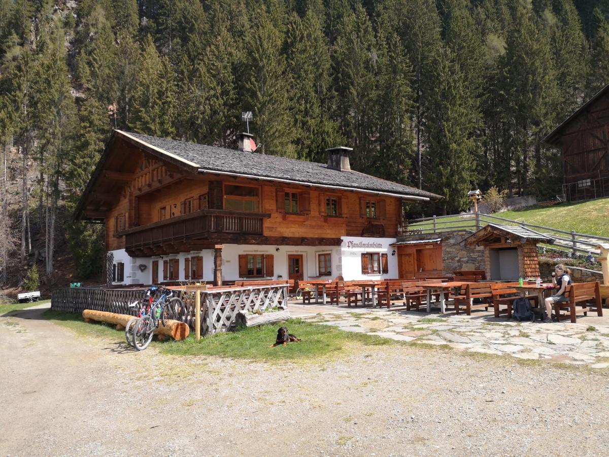 Die letzten Kehren legen wir nicht mehr auf Asphalt zurück, sondern genießen den Kiesweg im Schatten des Waldes. Endlich kommen wir an der Pfandleralm an - und haben