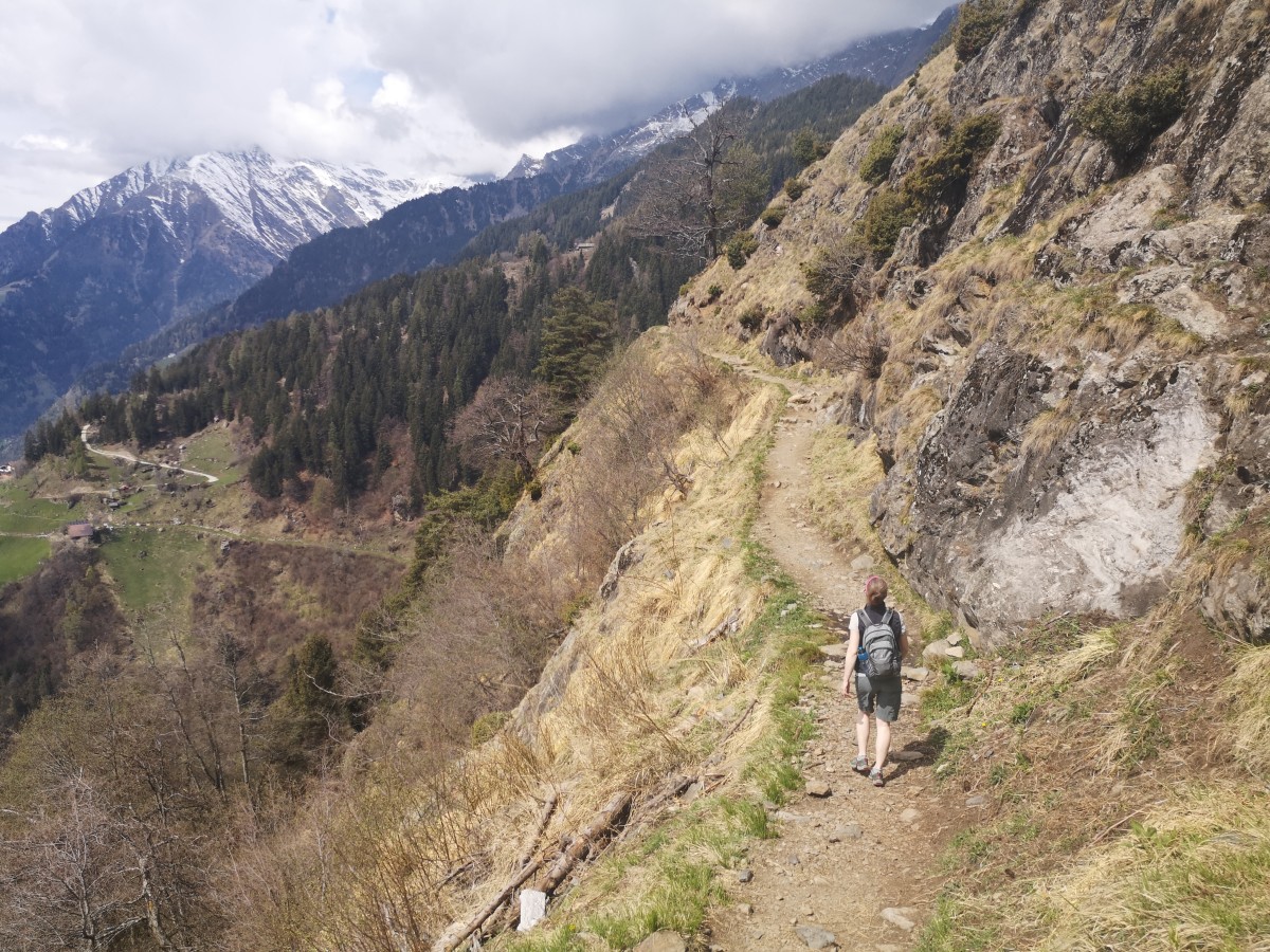 Von Moos aus geht es dann nördlich des Flusses an den durchaus steilen Hängen wieder zurück nach Sankt Leonhard. Wir müssen mit einer Wegsperrung