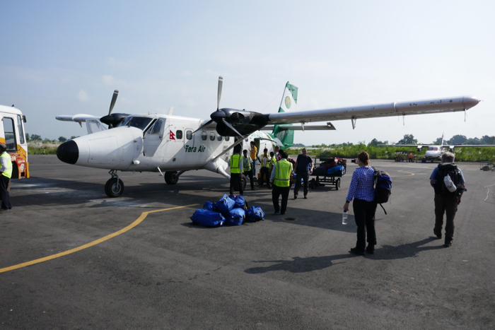 Das Glück - will heißen das Flugwetter - ist auf unserer Seite, und wir können am Vormittag des nächsten Morgens aus Nepalgunj Richtung Juphal abfliegen.