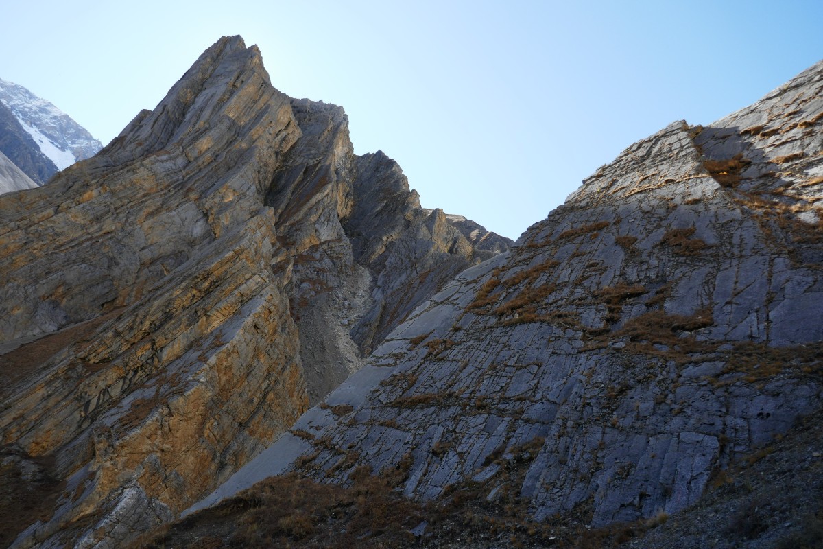 Im Weiterweg bauen sich nordwestlich von uns die Gipfel der Dhakraltyo-Lek auf. Der rechte erinnert mich stark an die Dolomiten...