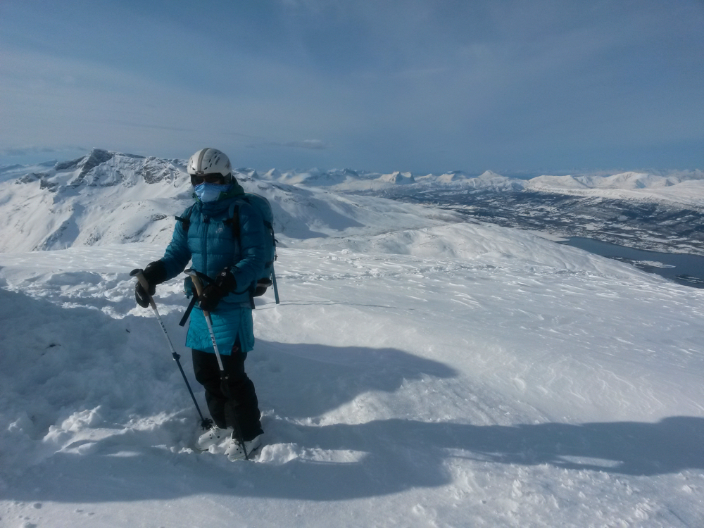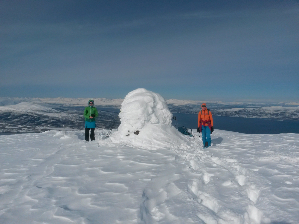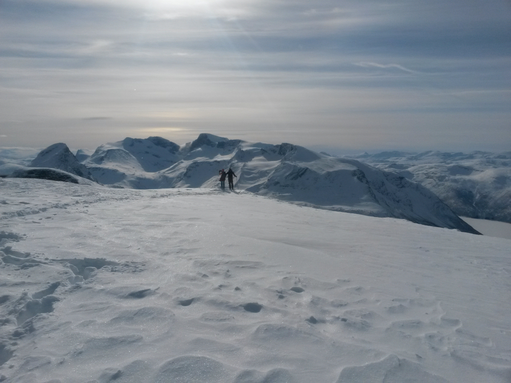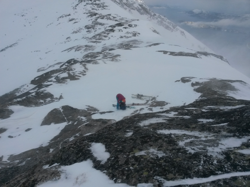 Leider bleibt das Wetter bis zum Ski-Gipfel des Titinden schlecht und sehr windig. Der vermummten