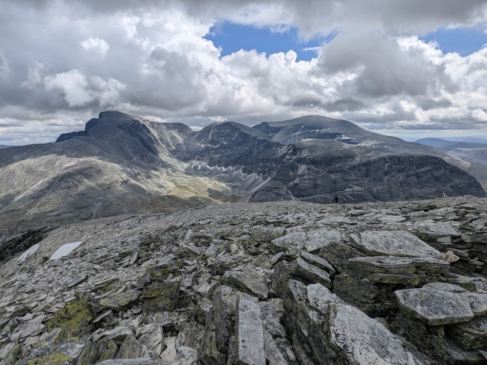 Die Nordseite von Rondslottet und Vinjeronden bricht steil in eine Geröllwüste ab.