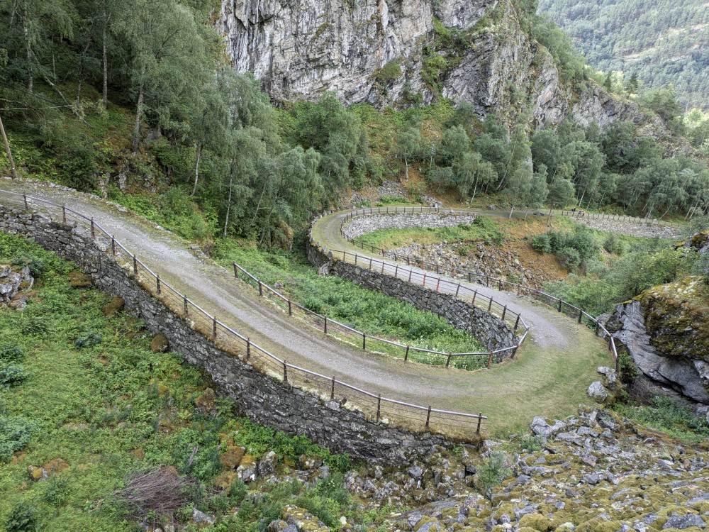 Der Weg über den Pass - nebenstehend im Weitwinkel fotografiert - war seinerzeit weniger riskant als die Schleife der Lærdalselvi, die durch ihn abgekürzt werden kann.