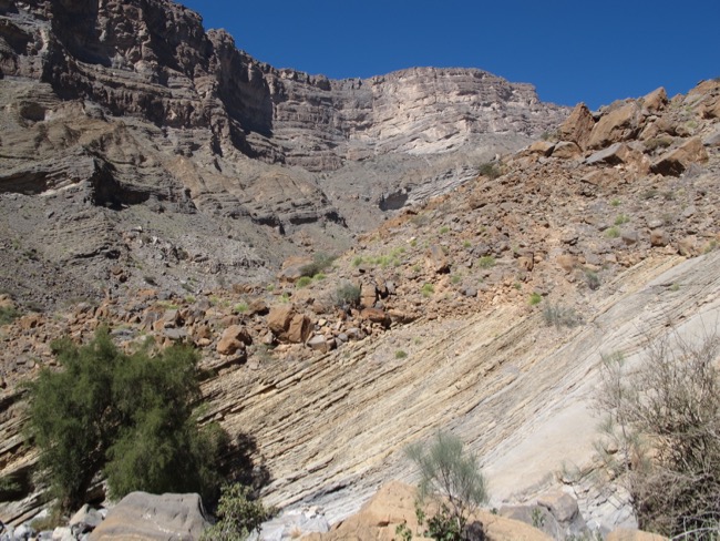 Eine mehrstündige Fahrt in 4WDs bringt uns von Mascat ins Wadi Bani Awf, wo die erste Trekkingetappe auf dem Programm steht. Durch schroff aufgefaltete