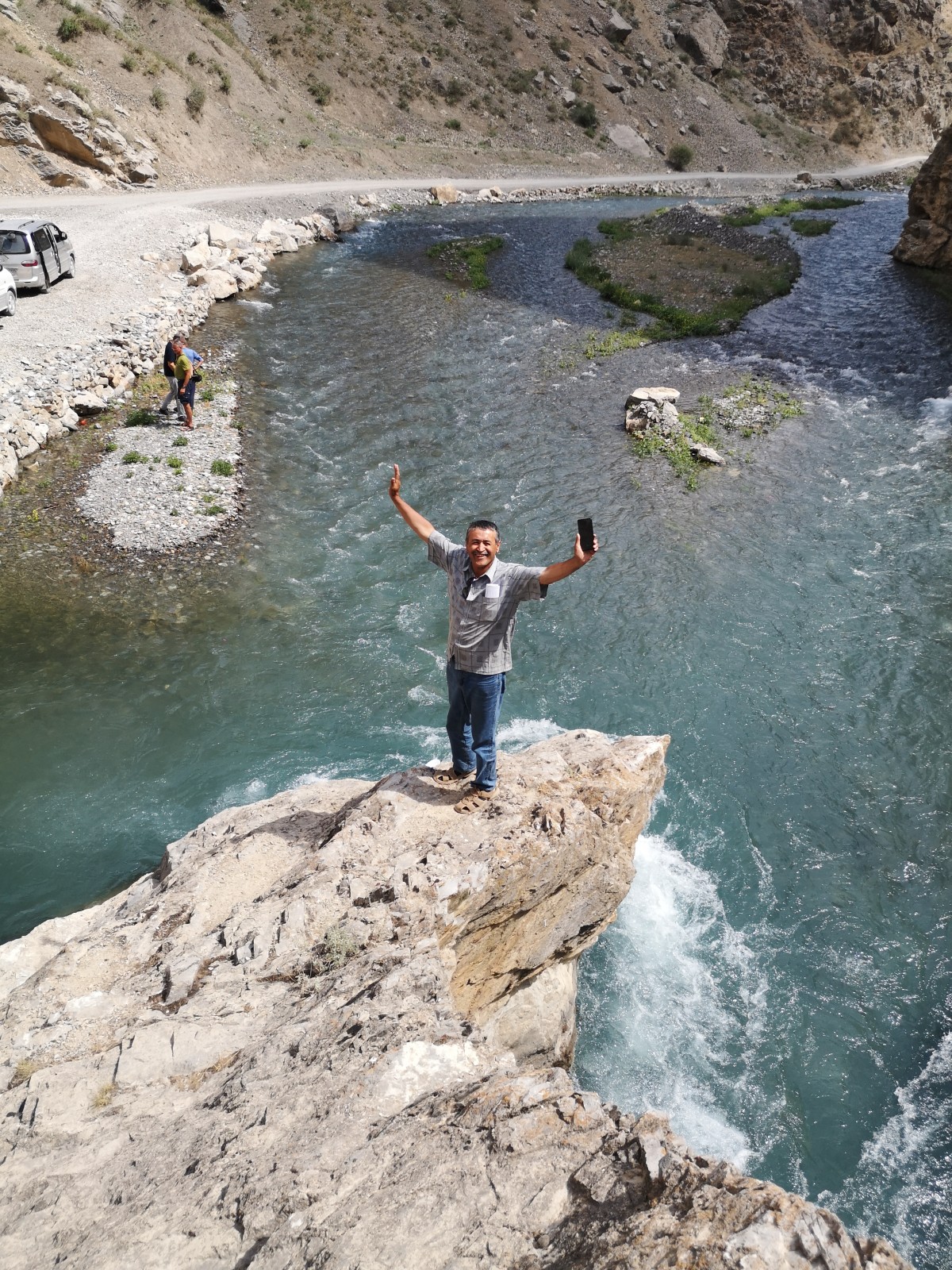 Danach geht es in zwei Allradfahrzeugen über Schotterpisten weiter zum Ausgangspunkt unseres Trekkings an den sieben Seen. Karim, unser Wanderführer, freut sich