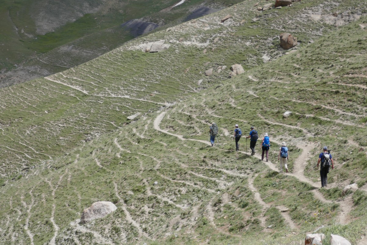 Wunderbares Trekking auf den Tavasang-Pass zu, der heute mit etwa 3100 Hm unser höchster Punkt ist.