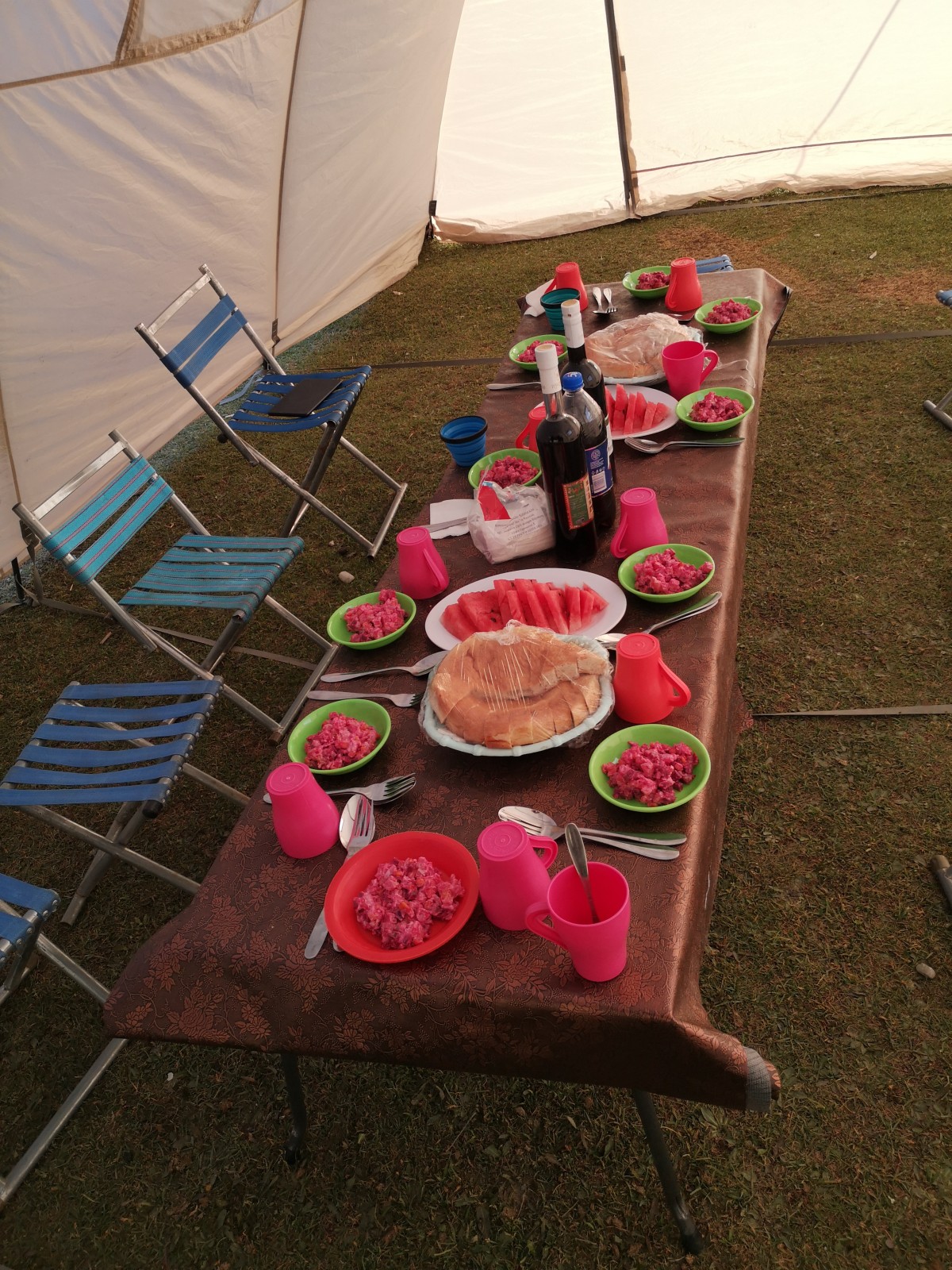 Abendessen im Essenszelt, erster Gang