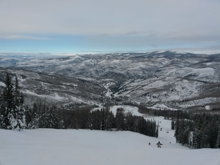 Blick über die Centennial-Piste und den Ort Beaver Creek. Im vergleich zu Breckenridge ist Beaver Creek etwas kleiner, aber deutlich steiler. Es gibt mehrere längere, fantastische Pisten, die das Fahren zu einem echten Genuss machen!