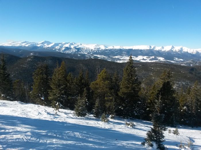 Blick von Keystone nach Breckenridge. Im Hintergrund ist die Größe des Skigebietes von Breckenridge gut zu erkennen.