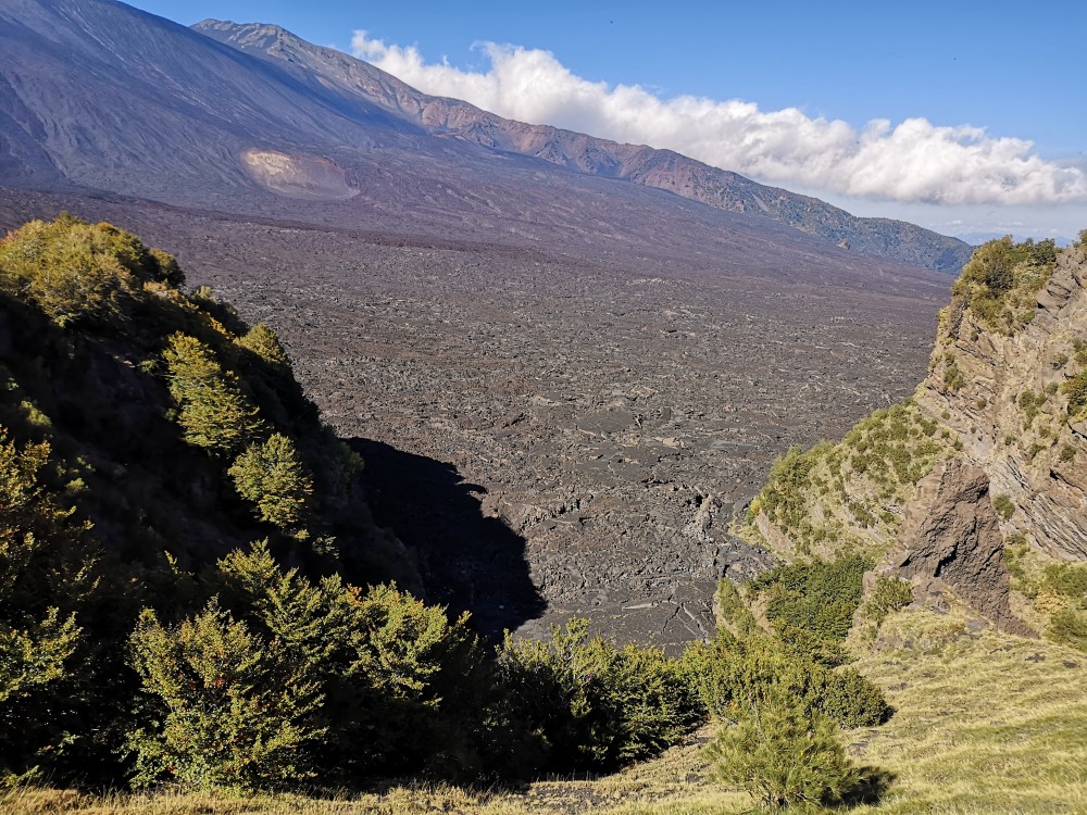 Vor uns liegen die gewaltigen Lavafelder des Vulkans, die meist zu einem beachtlichen Teil ins Valle di Bove