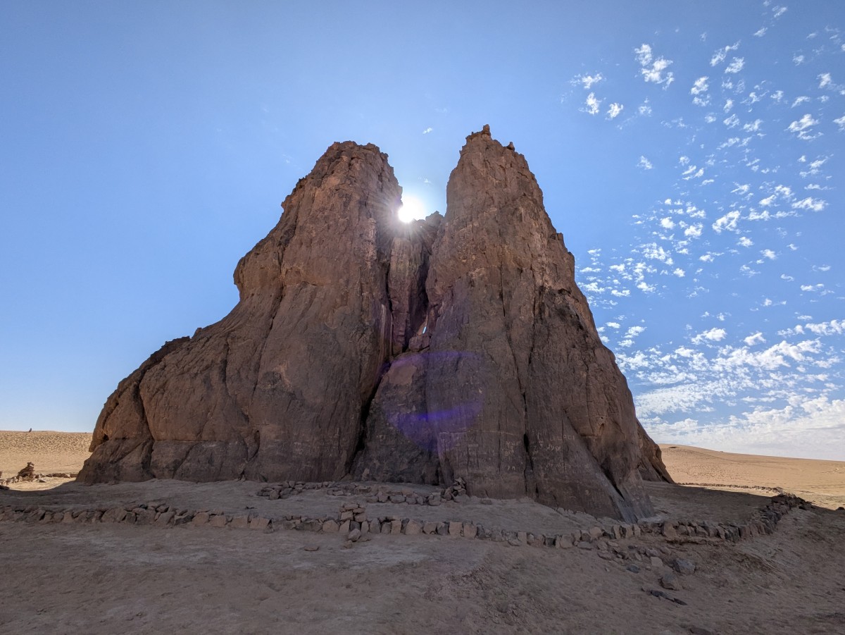Schließlich langen wir bei der Kathedrale an. Der Doppelsteinbogen trägt den Namen Timzguida in Tamahak, der Sprache der Tuareg.