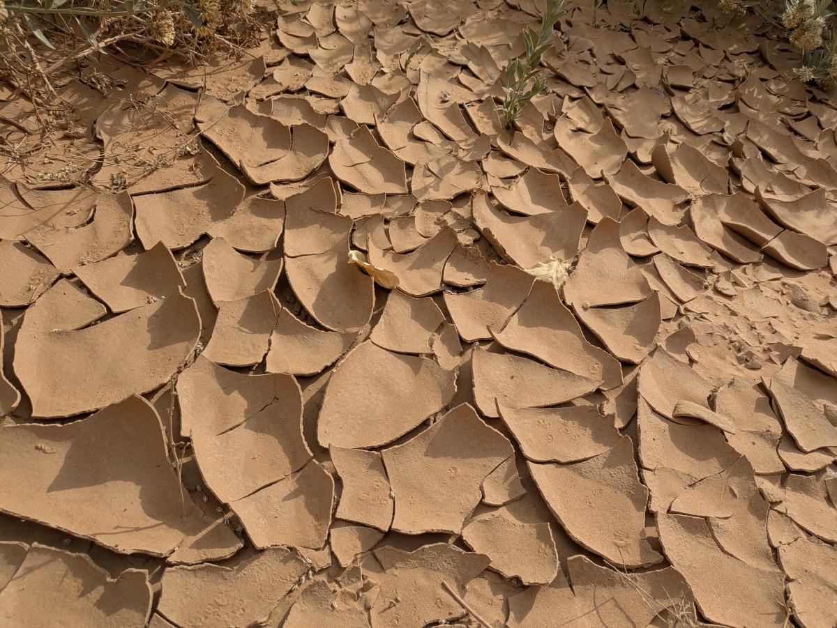 Rissig aufgesprungener Boden - Abdel-Karim spricht hierbei von Beduinenschokolade!