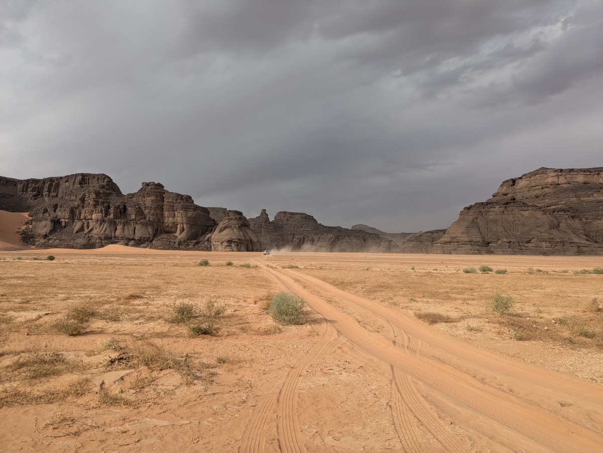 Nach der Besichtigung steht noch eine längere Fahrt nach Osten zum Tadrart an. Der Landschaftscharakter ändert sich;