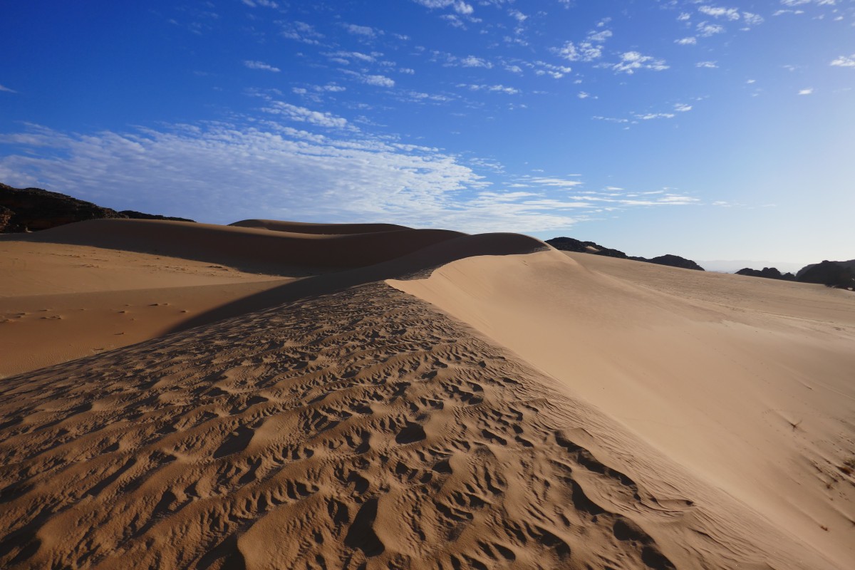 Lange Dünen begleiten uns auf dem Weg aus der Felslandschaft in die freie Ebene.