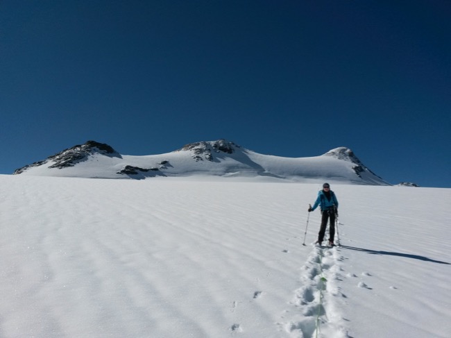 Der Gletscher läuft relativ flach und griffig dahin. Wir kommen gut voran und haben