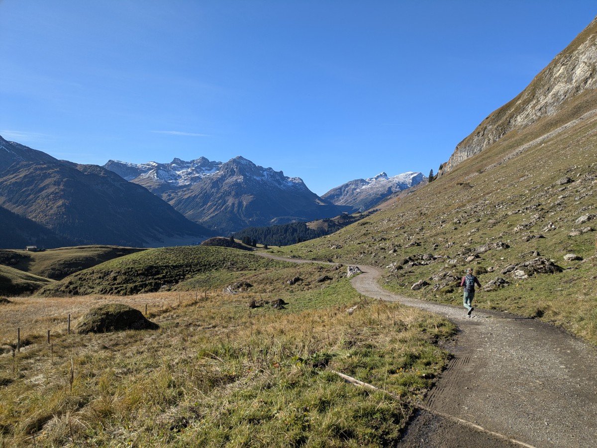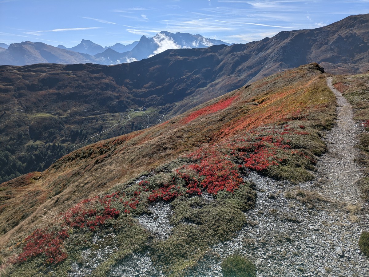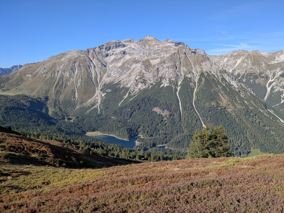 Am nächsten Tag schalten wir geschwindigkeitstechnisch wieder einen Gang zurück. Am Tschirggen vorbei wandern wir südseitig zum