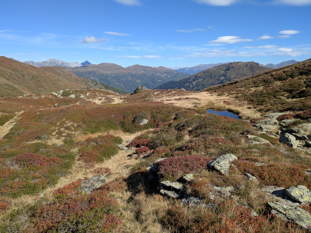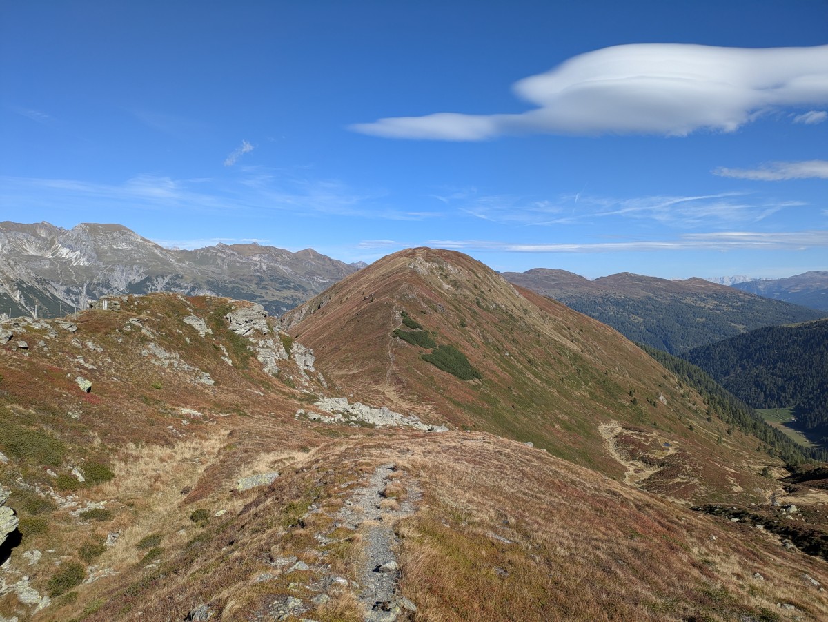 Bald darauf stehe ich am Wegweiser zum Sandjoch, über welches ich direkt zum Hohen Lorenzen weiterlaufen könnte. Der mittlerweile
