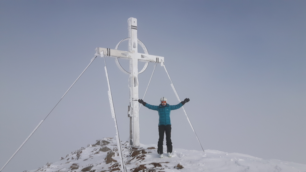 Am Gipfel des Hohen Lorenzen angekommen stehen wir auf der Grenze zwischen Österreich und Südtirol. Da die