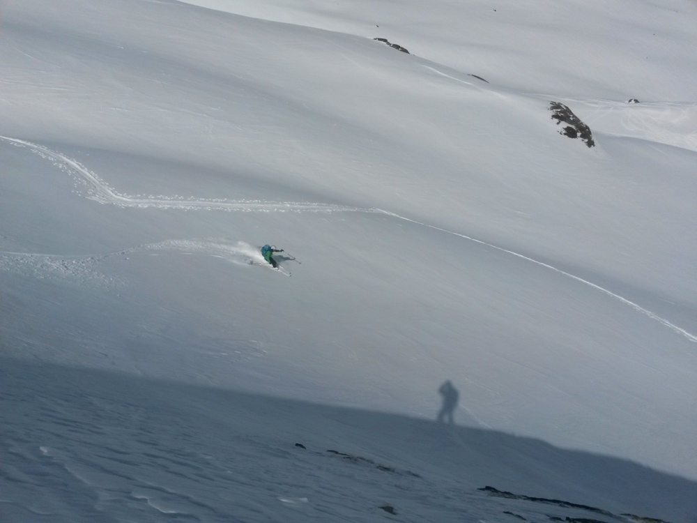 Bei der Abfahrt wird es noch besser; die Wolken lösen sich auf und wir haben die Abfahrt für uns allein!
