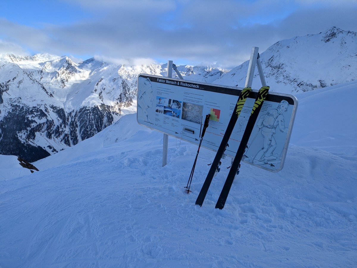 Am nächsten Tag starten wir zunächst noch einmal zur Madritsch-Spitze. Der Logik nach sollte die Lawinengefahr dort mittlerweile
