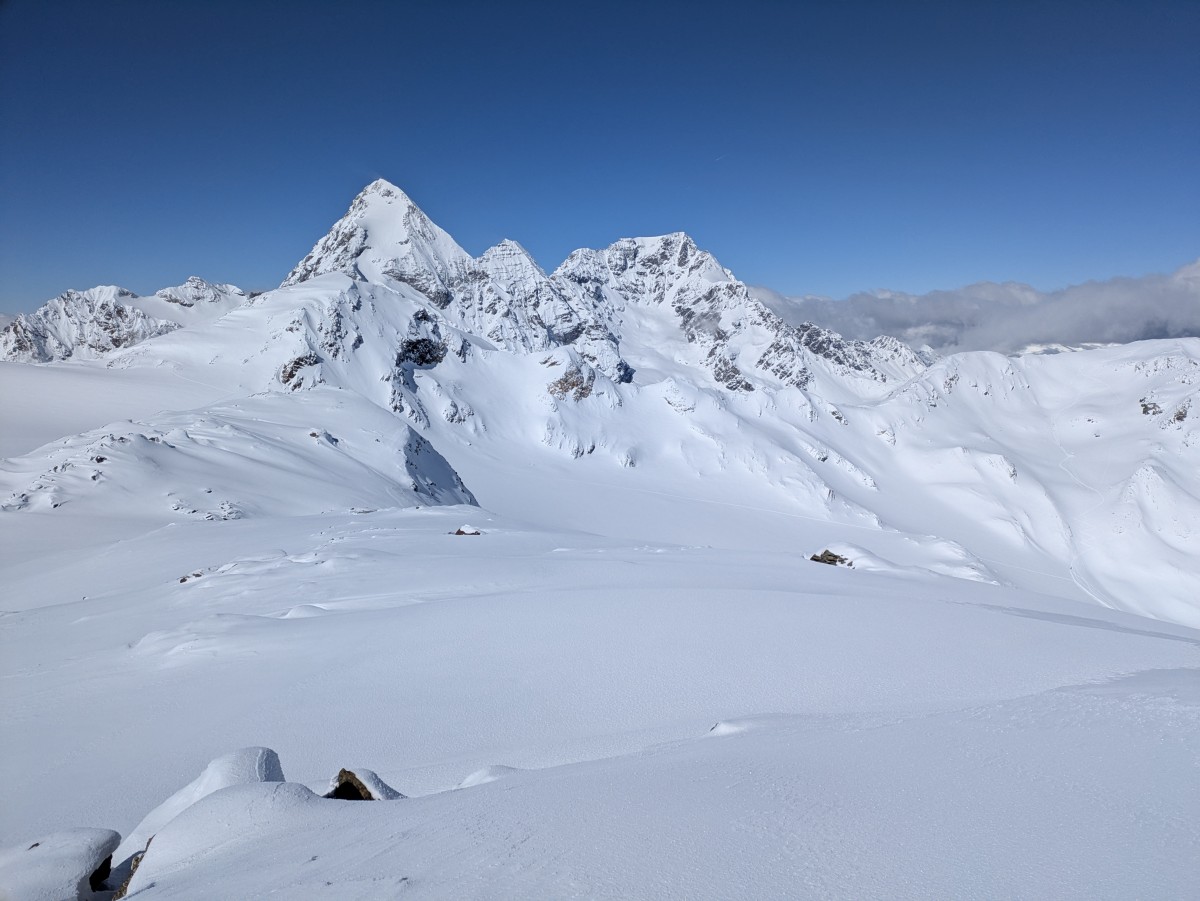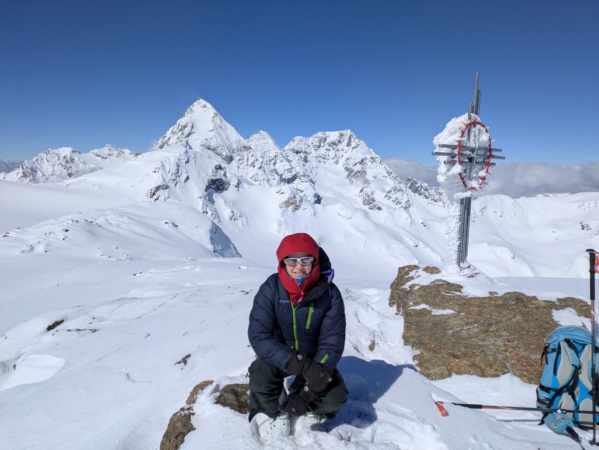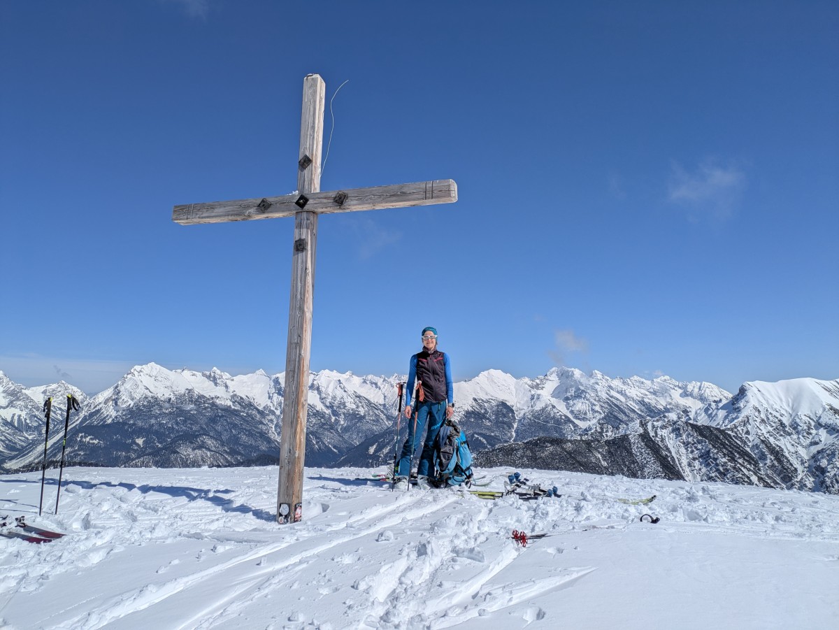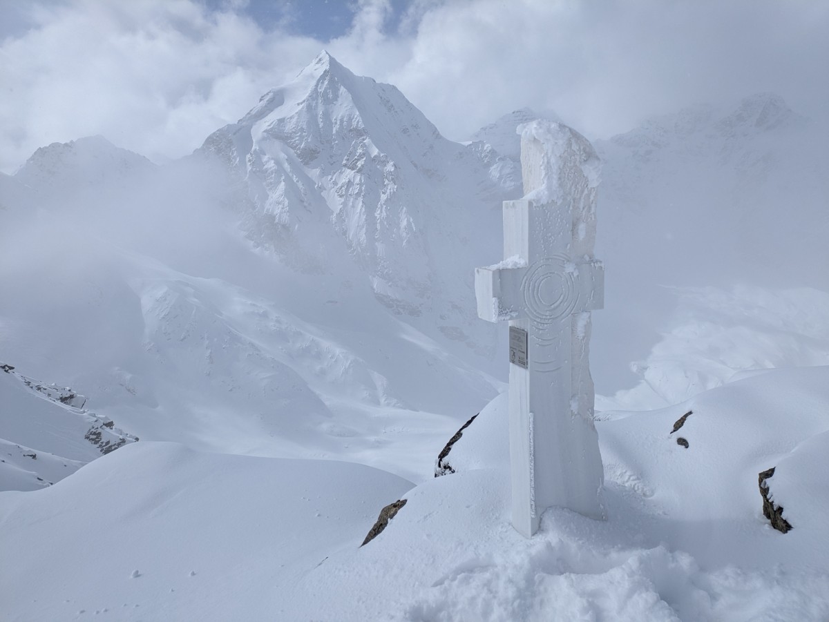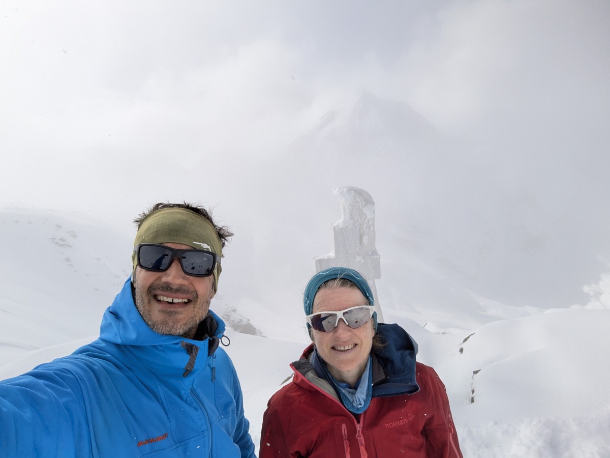weitergehen. Auch hier haben wir das Glück, eine frische Spur vorzufinden. Am Gipfel werden wir uns bei dem Südtiroler Bergführer