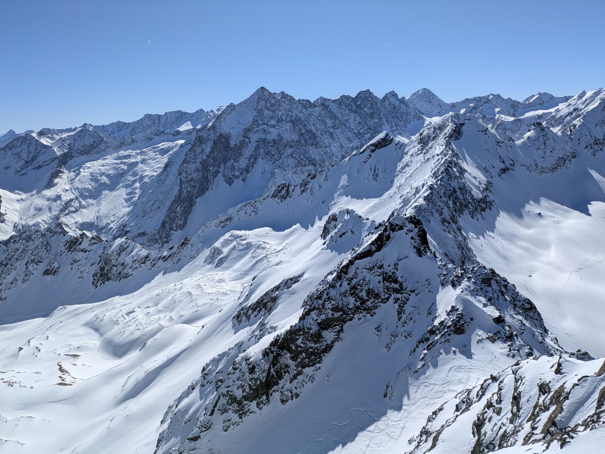 Im Rückblick das phantastische Panorama zu Köllkoppe, Vertain- und Schranspitze. Grandioser Tag!