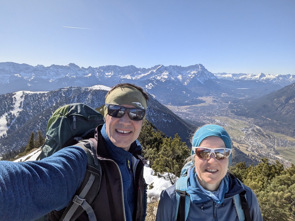 Am Gipfel genießen wir bei windstillen Bedingungen das tolle Panorama.