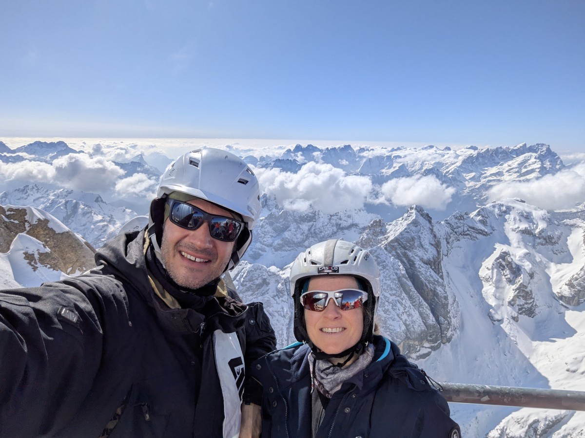 Wir verpacken uns dick und genießen das spektakuläre Panorama zu Königsspitze, Zebrú und Ortler. Welch illustre Bergprominenz!