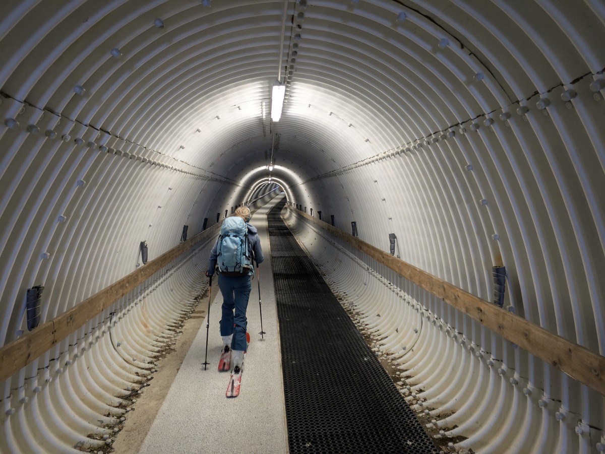 Sonnenphase die letzten Meter zum Skidepot nach oben zu kommen.
