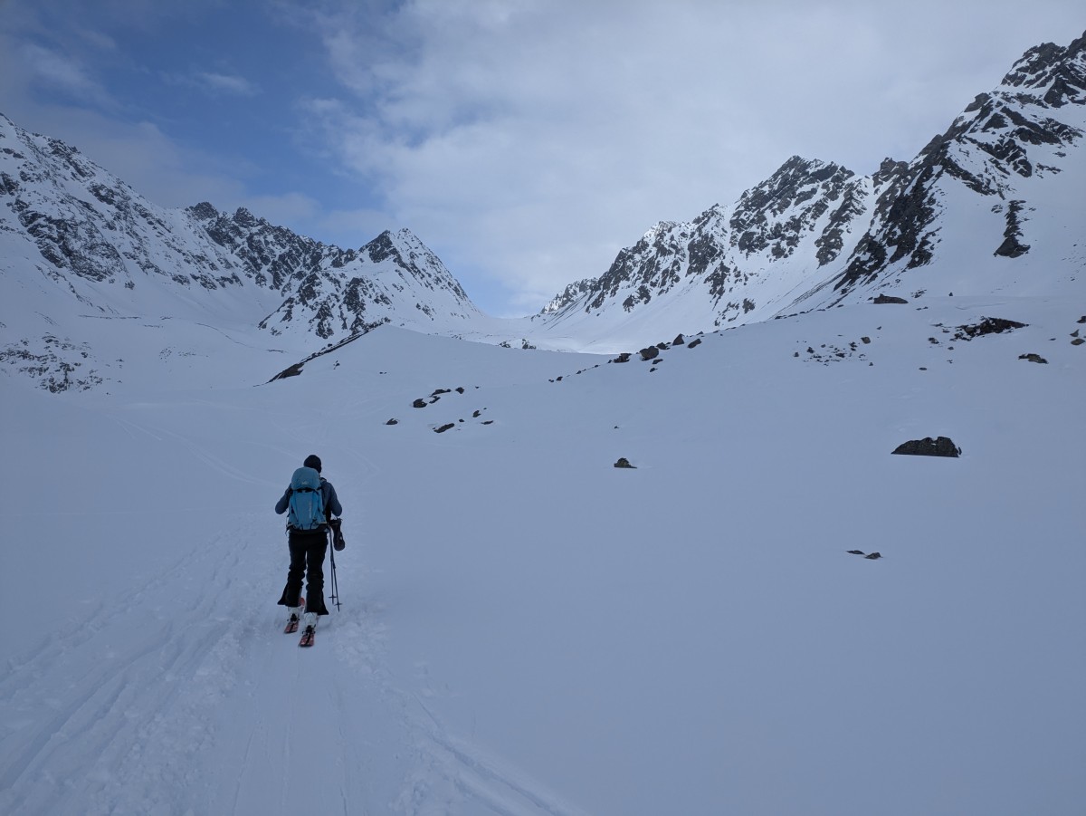 Nachdem wir erst zum falschen Skidepot abgebogen waren, erkennen wir den richtigen Weg und haben sogar das Glück, in einer kurzen
