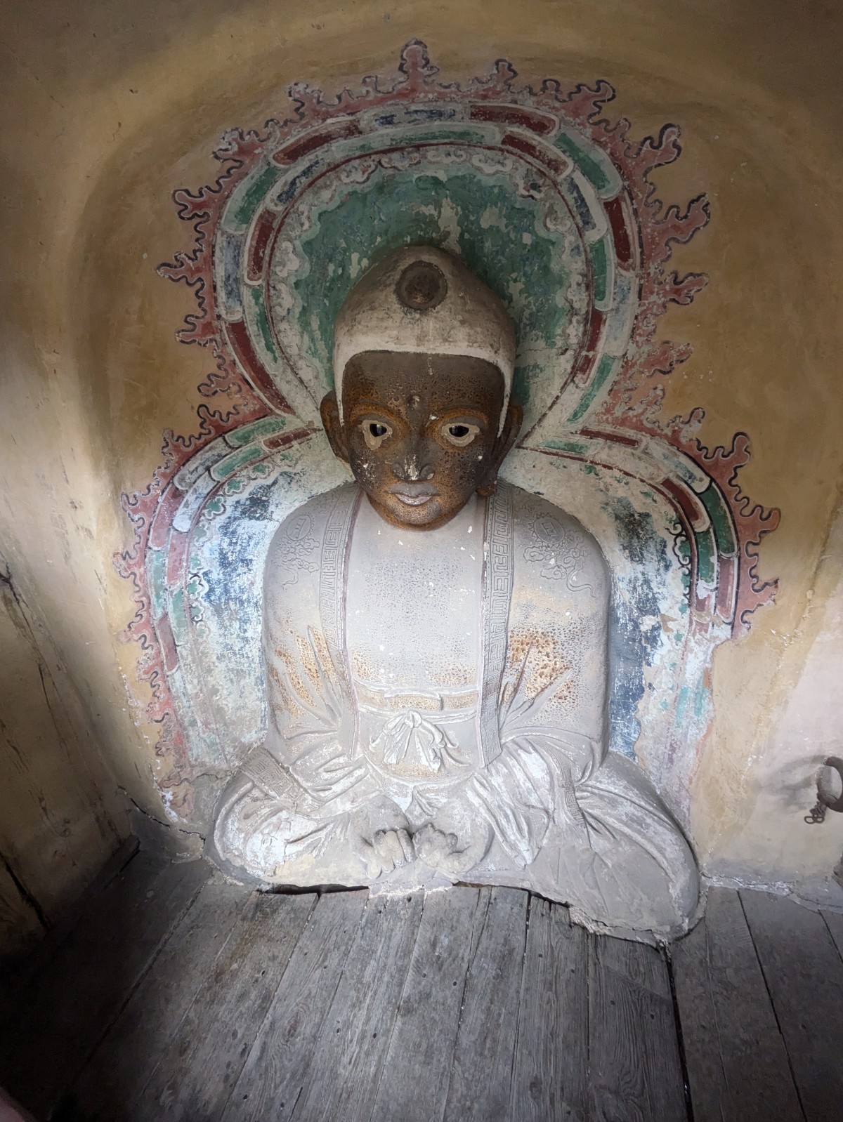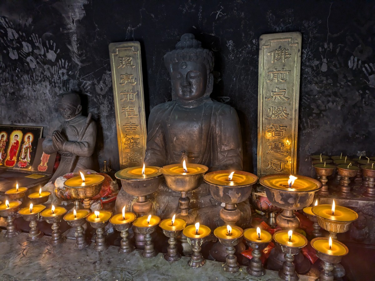 Wir bewundern die schön verzierten Figuren, die etwa vor 1500 Jahren entstanden sind - gänz ähnlich wie jene bei Datong.