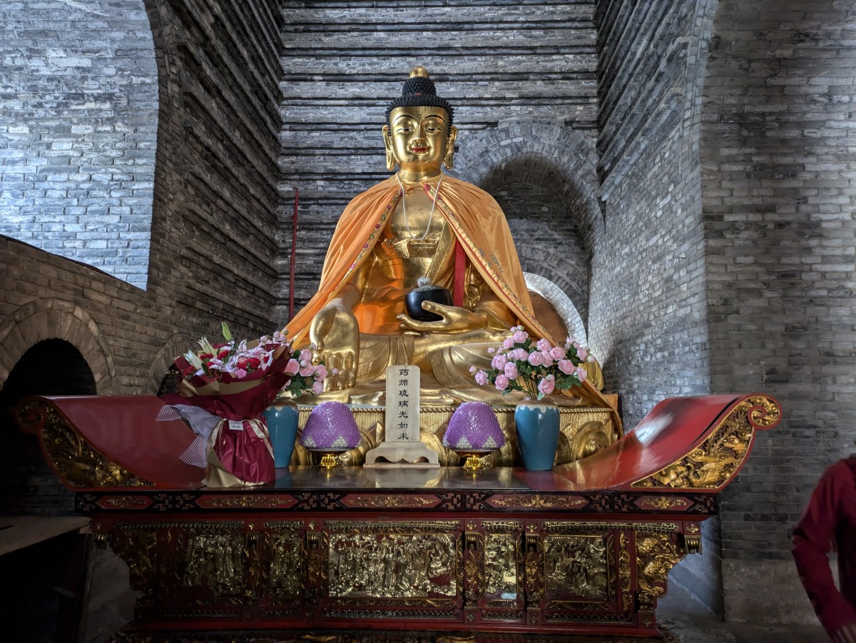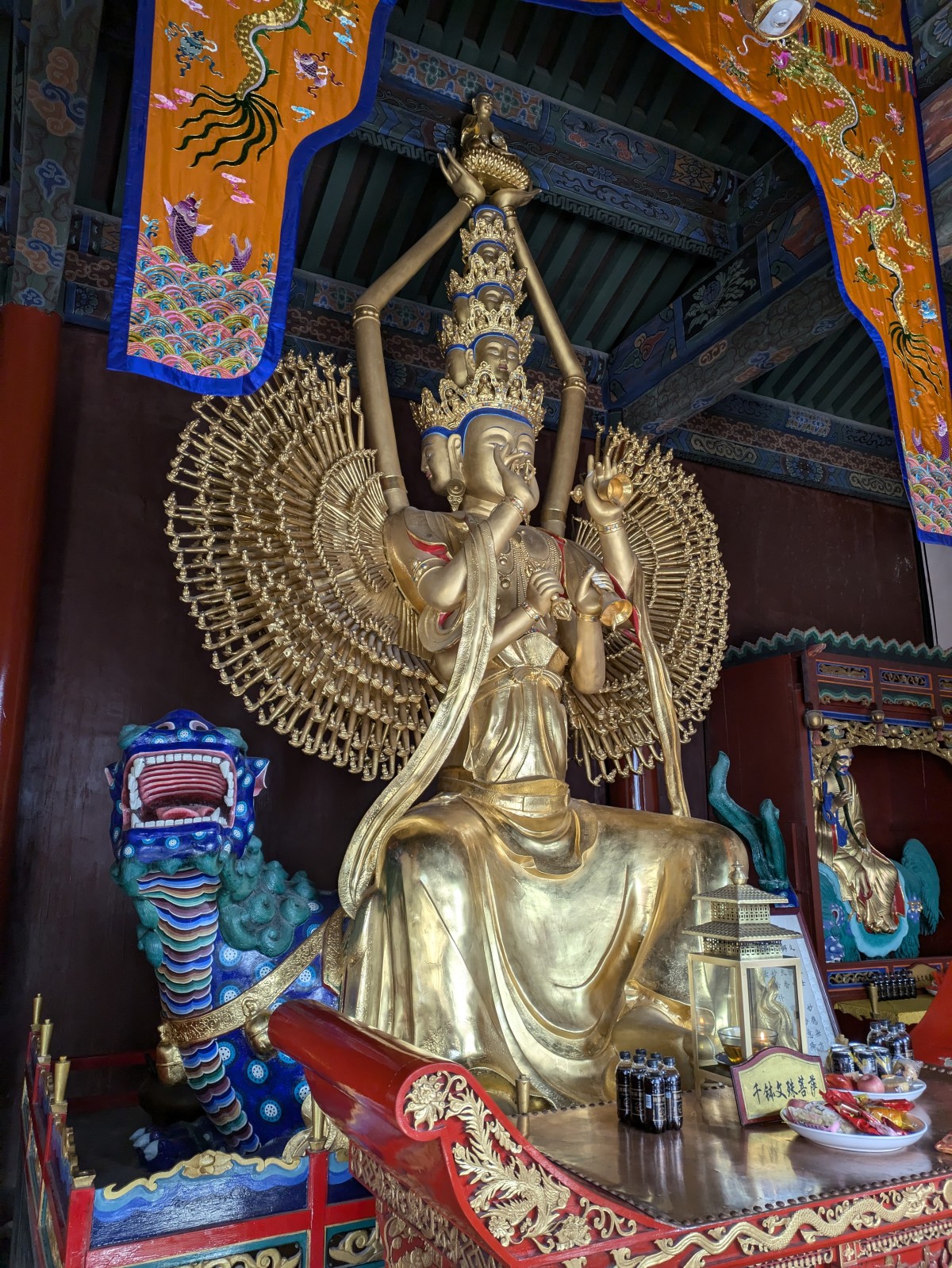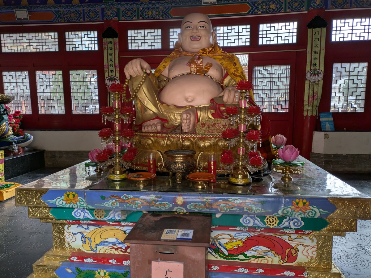 Weiter geht es zum Xiantong Tempel. Ein huldvoll lächelnder Buddha der Barmherzigkeit läßt uns passieren.