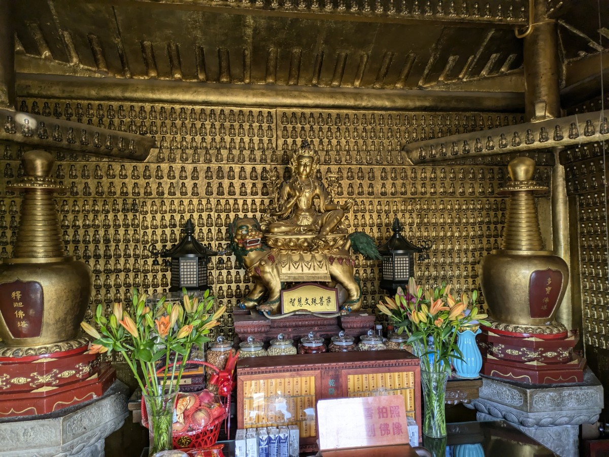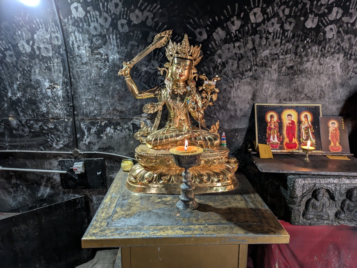 Eine schöne Manjushri-Statue in einem der ältesten Bereiche des Klosters.