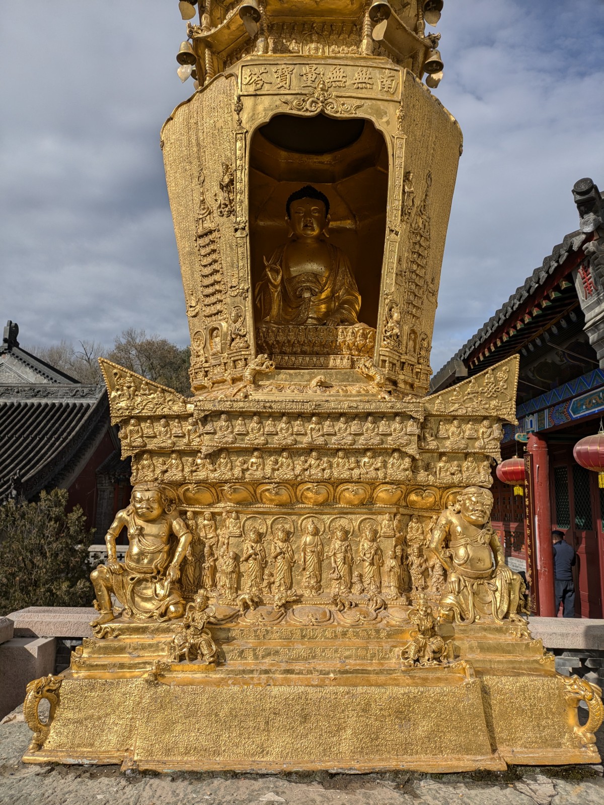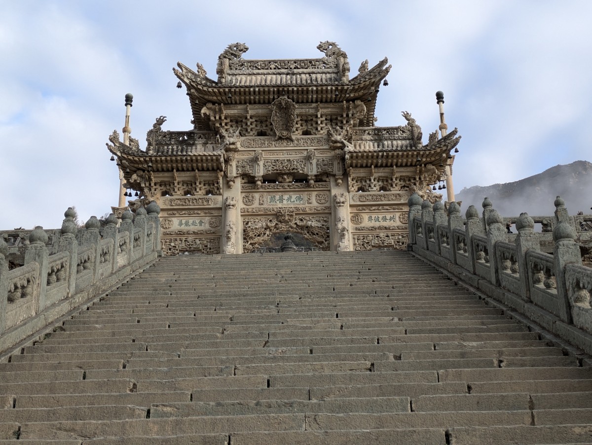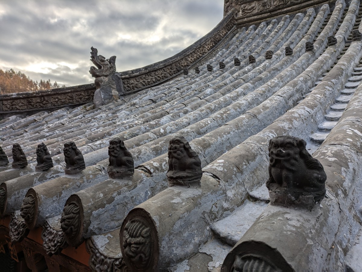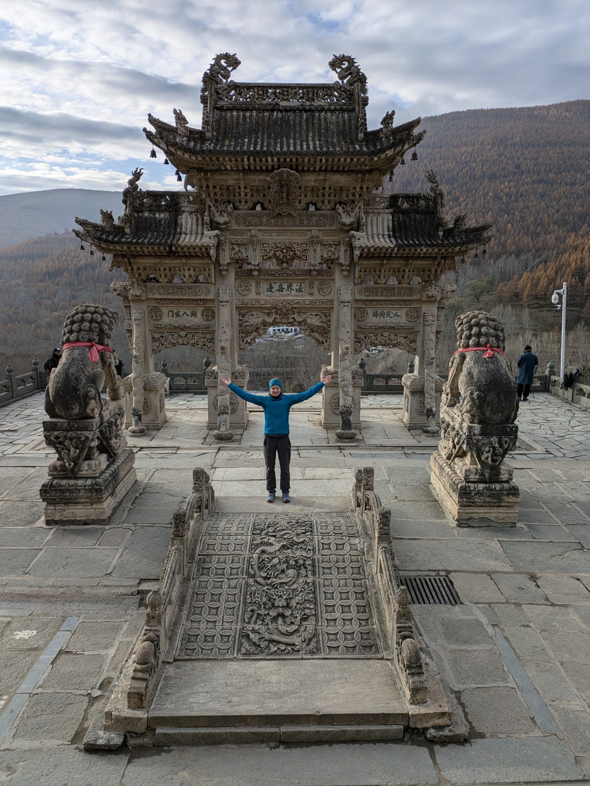 Tags darauf ist der Himmel glücklicherweise nicht mehr so stark bewölkt. Wir können den Longquan-Tempel mit seinem prachtvollen Steintor