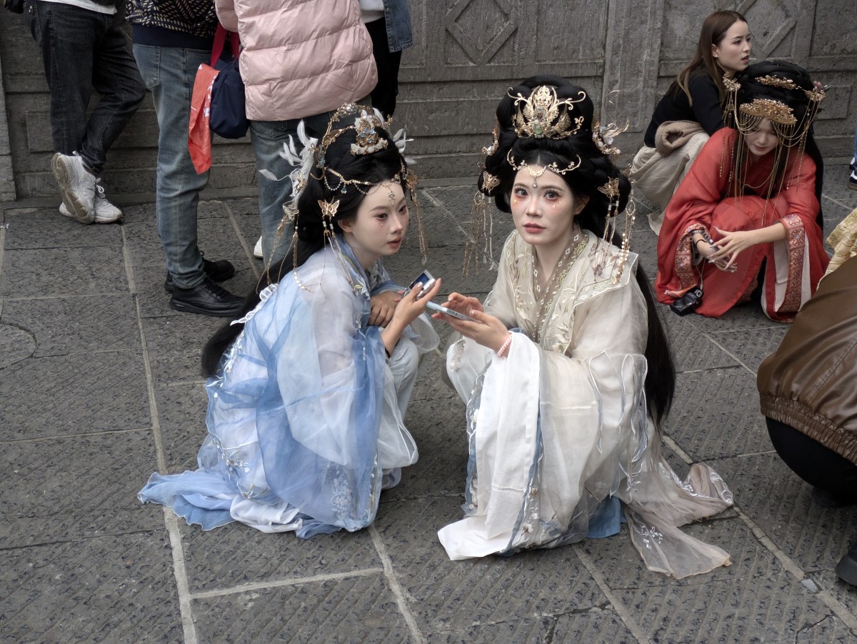 Bemalt sind auch einige junge Damen, die sich vor der illustren Kulisse in historischen Kostümen ablichten lassen wollen. Überall auf unserer