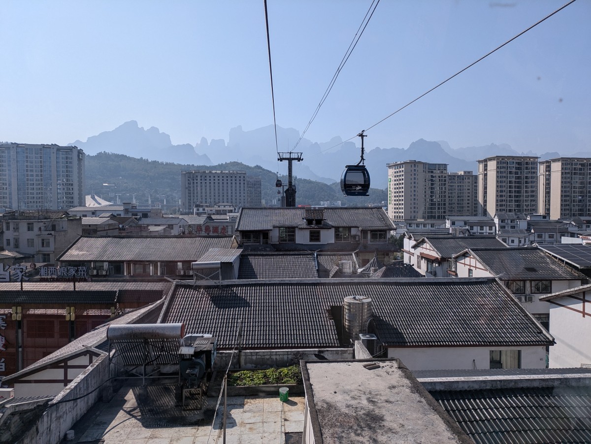 Mit einer der längsten Gondelbahnen weltweit geht es am nächsten Vormittag direkt aus der Stadt Zhangjiajie zu einem touristischen