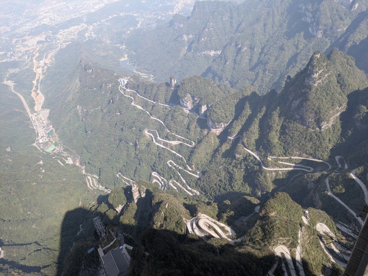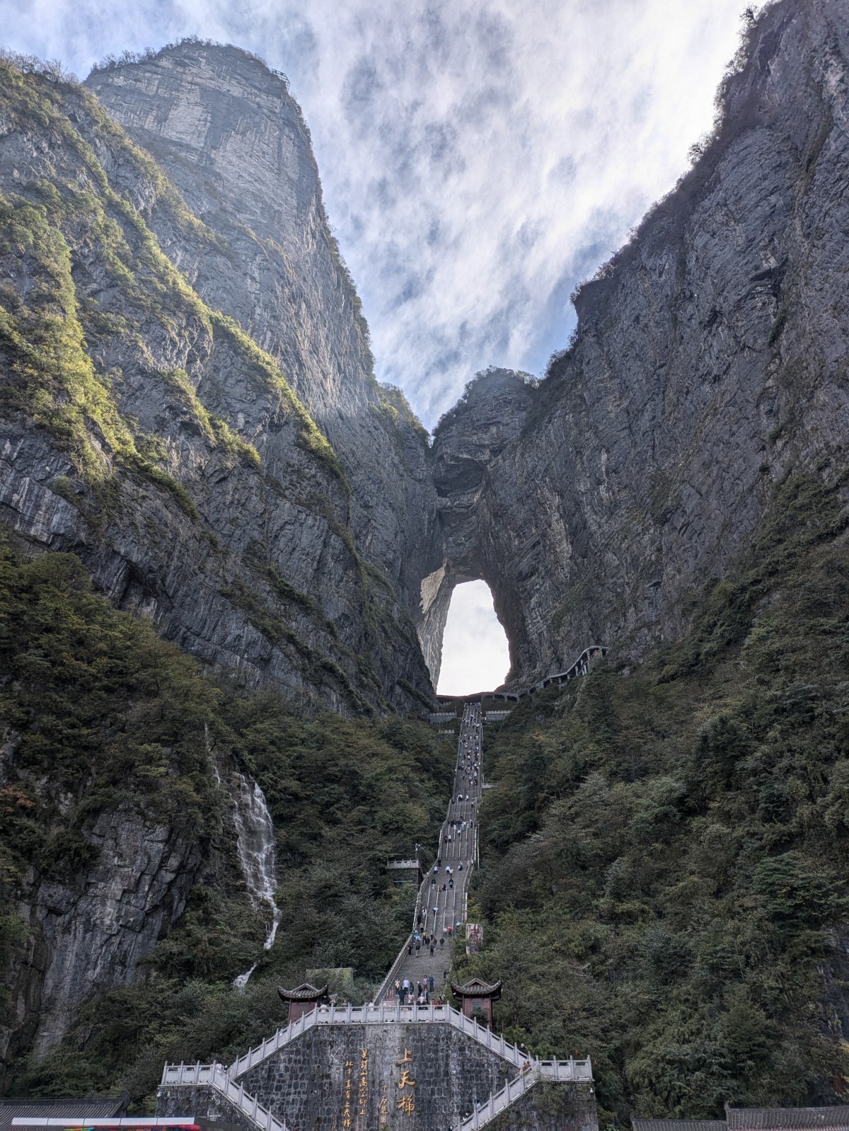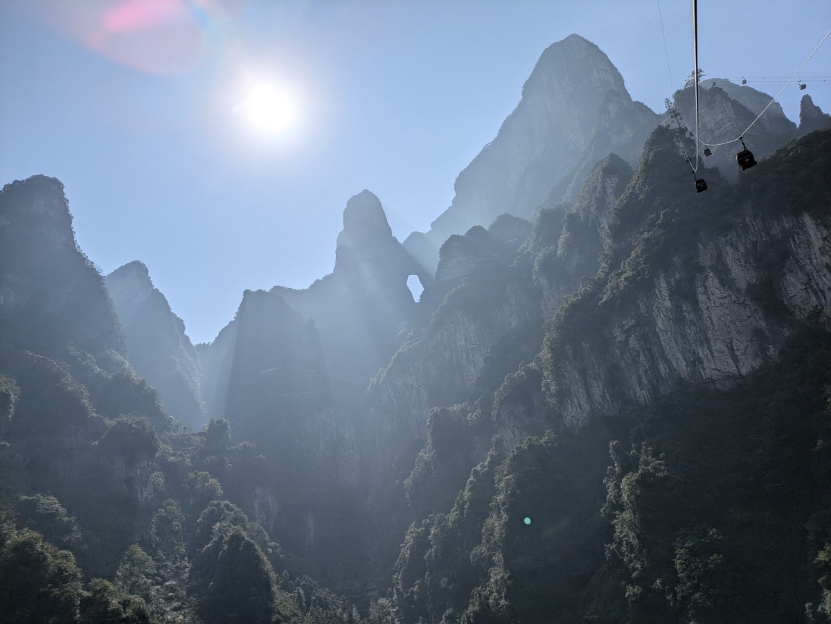 Die anschließende Gondelfahrt ist spektakulär - und schon bald erkennen wir das Merkmal, welches den Tianmen-Shan so berühmt