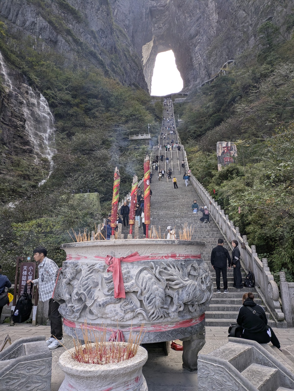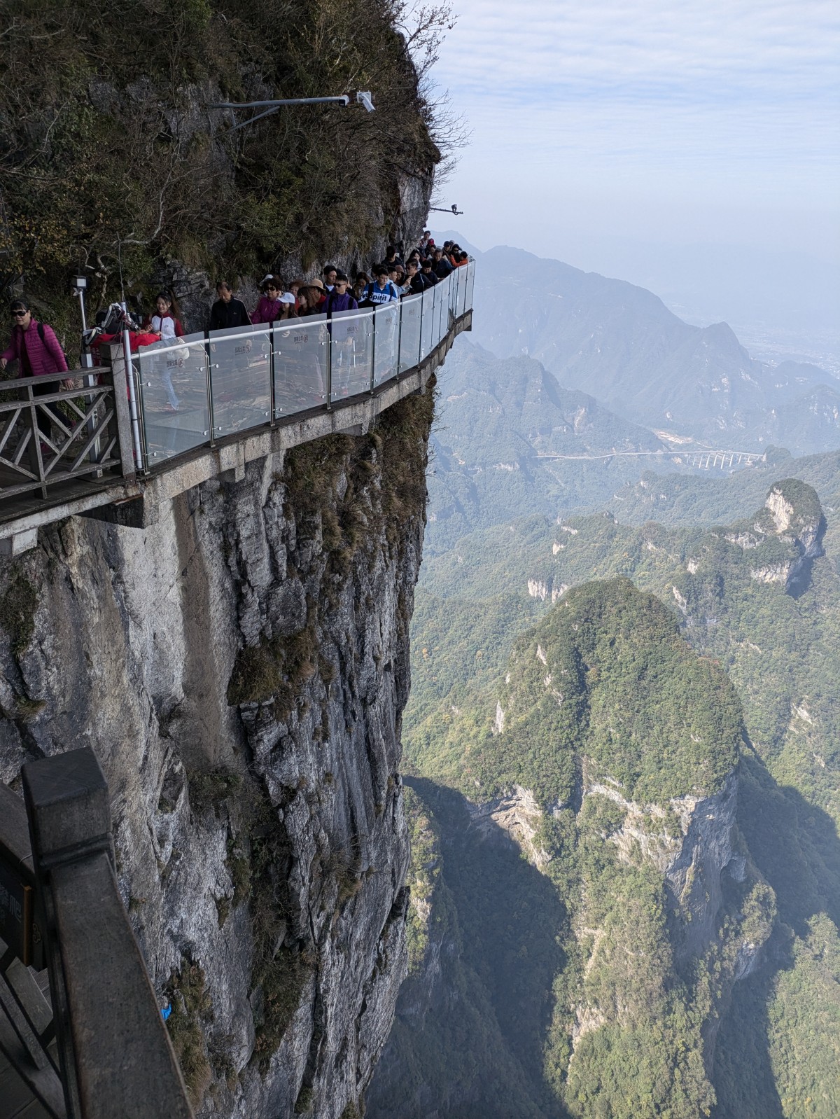 Hotspot - wir fahren auf den Tianmen-Berg. Wie auch schon am Vortag haben wir mit den Warteschlangen kein großes Glück; wir verbringen